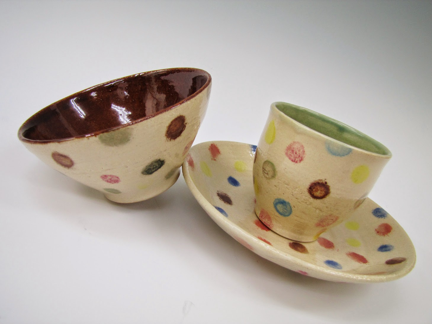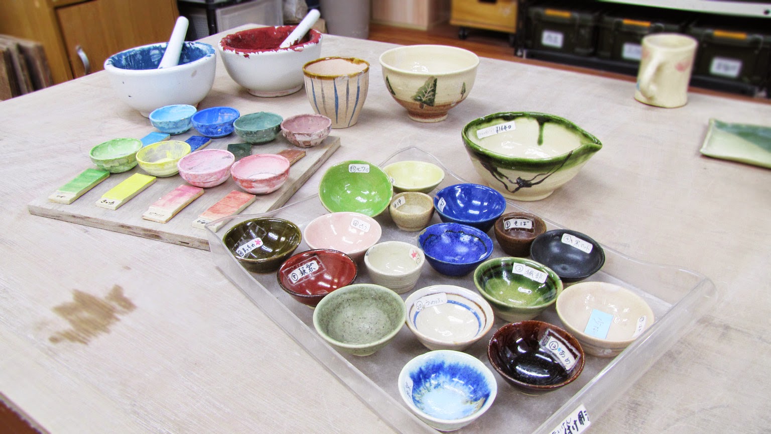 自分で作った器たちにオリジナルの色や絵が付けれます。