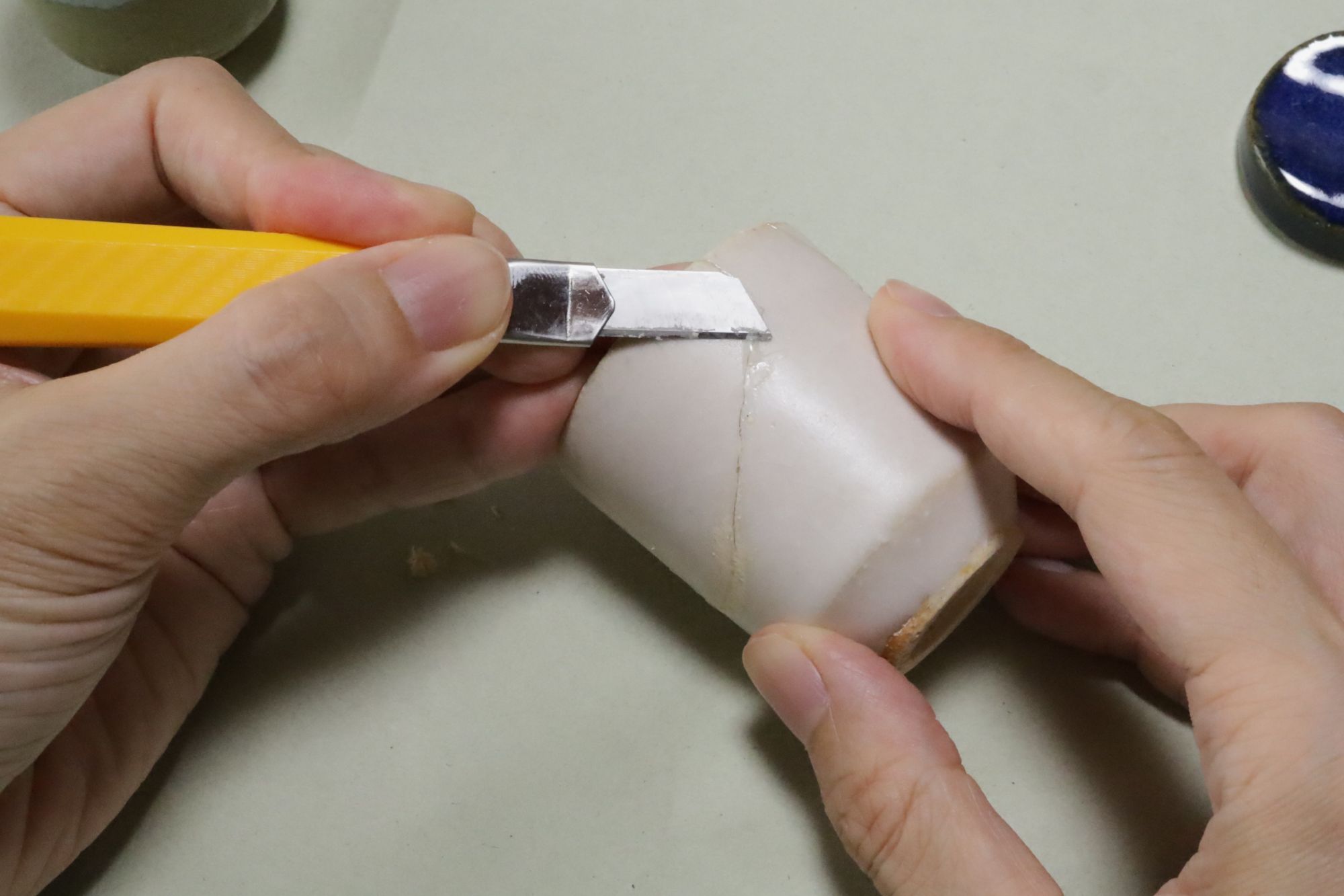 固まってしまったのところをカッターナイフで削るのは、