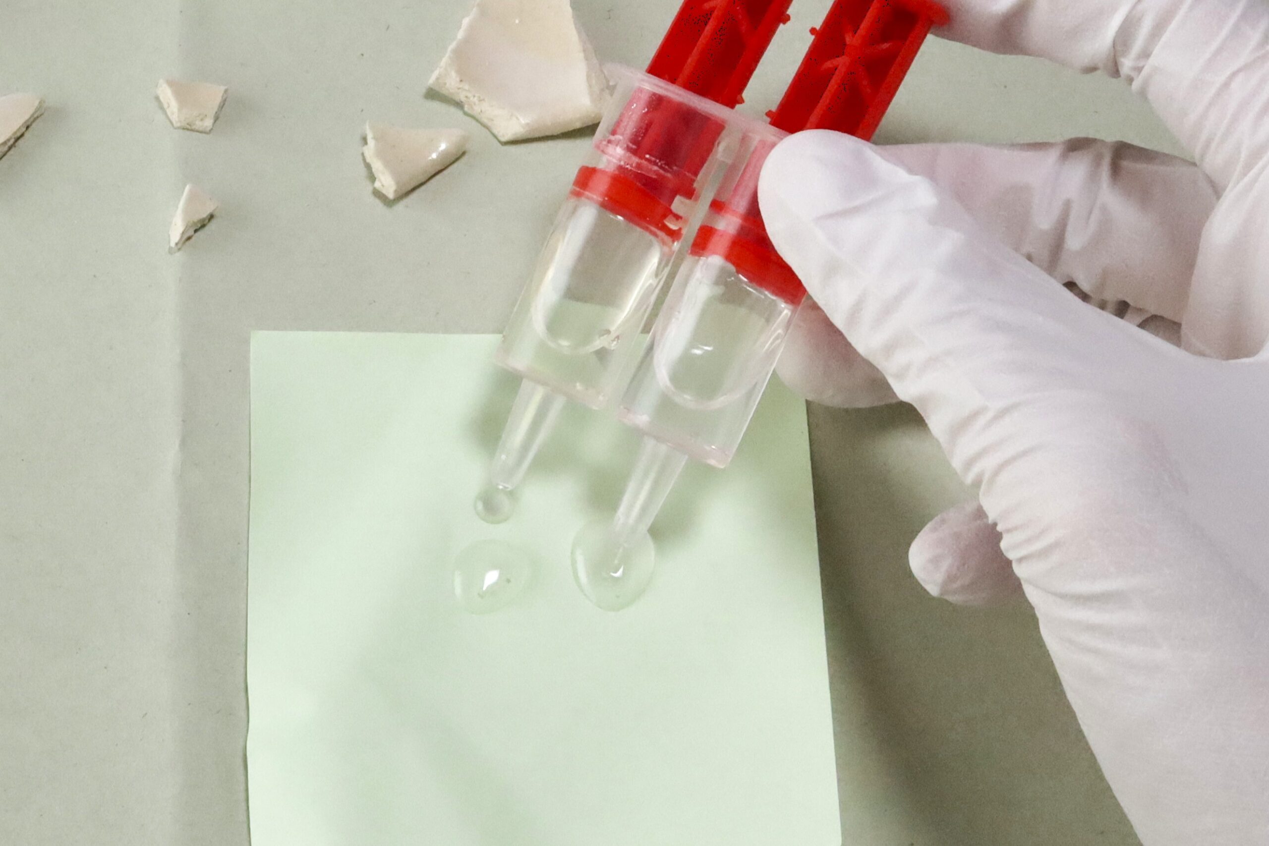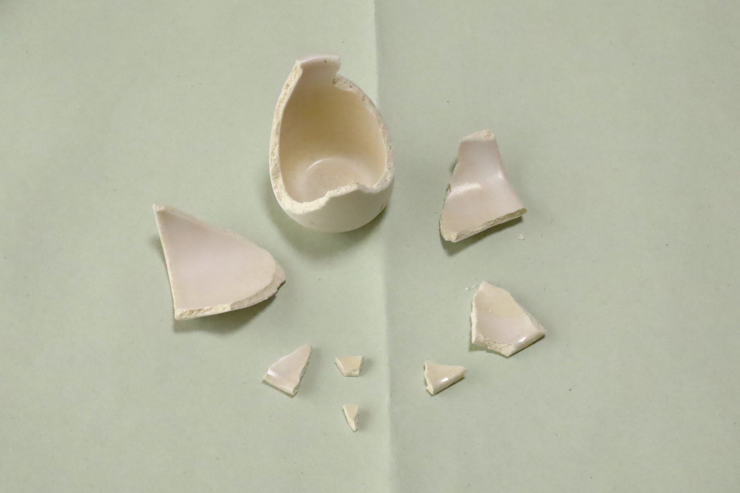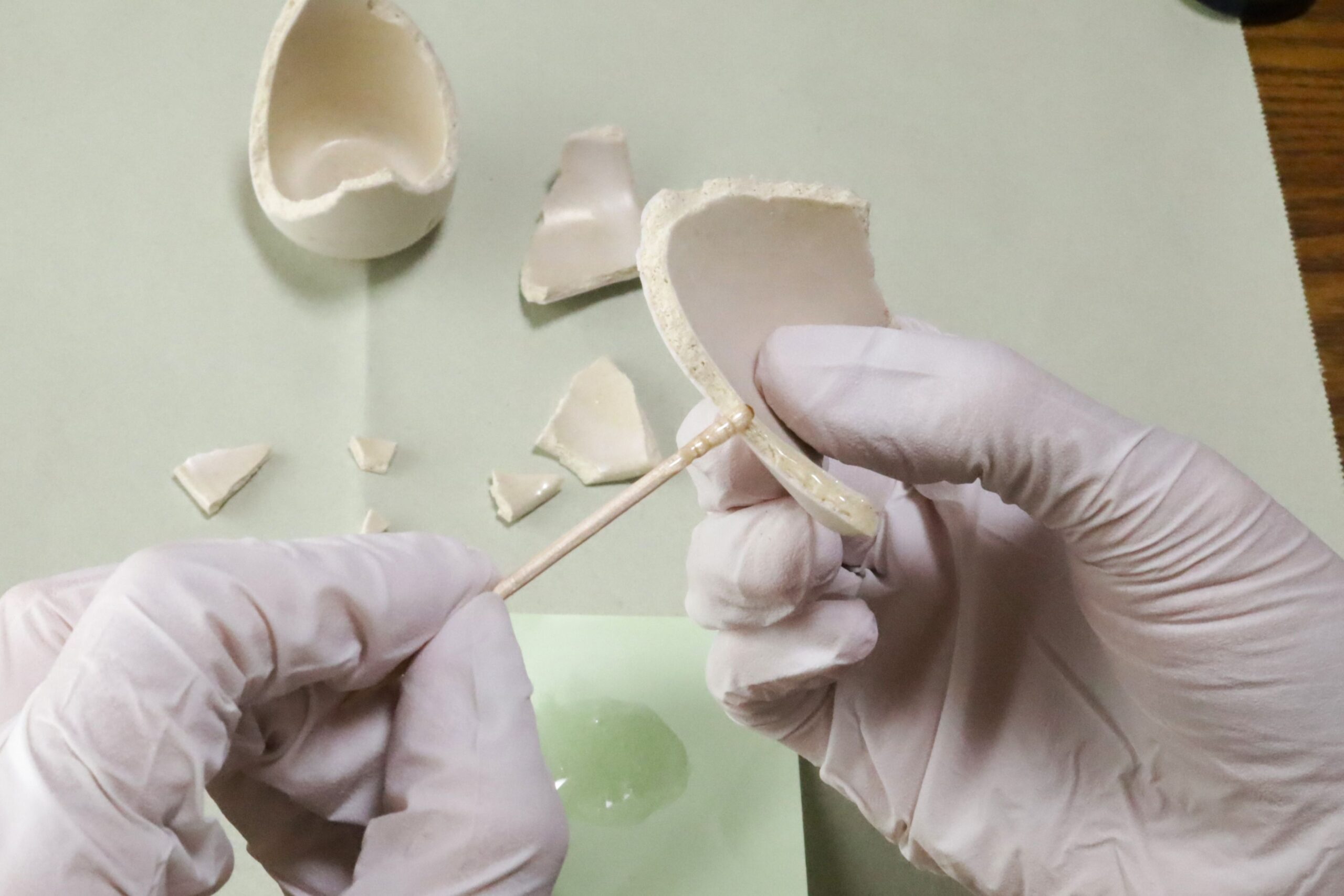 いよいよ割れたお猪口の破片を繋ぎ合わせていく作業の始まりです!