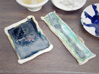 夏休み自由研究で作った作品。金属を粘土とガラスで焼くとこんな色になります。さあ、どれがどの金属かな?